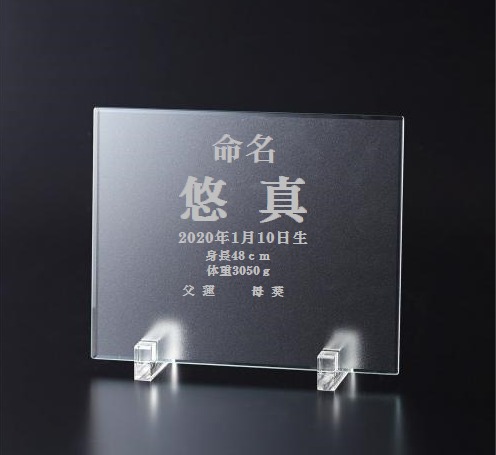 一生忘れる事のない生誕記念日を、ガラスプレートやガラス盾、ガラスフォトフレームで名前入りの命名書が製作可能です。
